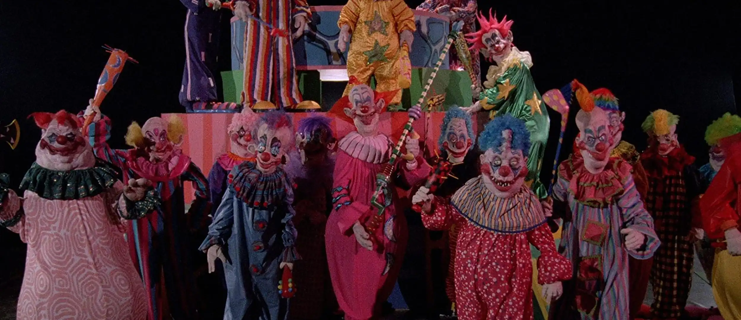 KILLER KLOWNS FROM OUTER SPACE (1988) – I'ts crazy, hiess es im Trailer und auf dem Originalplakat. Sogar die Werbetexter schienen nichts besseres auf Lager zu haben um diese abgefahrenen B-Horror-Parodie zu beschreiben. In einem Kaff landen Aliens, die aussehen wie Clowns und terrorisieren die Bevölkerung. Warum dem so ist, interessiert niemanden. Spassig ist dafür, wie sie es tun. Torten, Popkorn und Zuckerwatte werden zu Waffen. Veranwortlich für die wahnwitzige Produktion sind die drei Brüder Chiodo, die ausserhalb der B-Movie-Szene eher für ihr Effekthandwerk bekannt wurden und beispielsweise bei CRITTERS (1986) oder TEAM AMERICA (2004) mitgewerkelt haben.